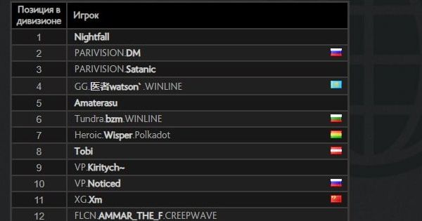 На момент публикации материала первое место в европейском ладдере занимает Егор Nightfall Григоренко, второе — Дмитрий DM Дорохин. Третью строчку в рейтинге занимает Алан Satanic Галлямов.